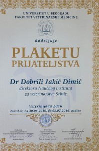 Научни институт за ветеринарство Србије у 2021. години обележио је 95 година постојања, a значајан допринос развоју науке и привреде награђен је Светосавском наградом дана 27.01.2022. Награду је у Влади Републике Србије у име института примила директорка др сци. вет. мед. Добрила Јакић Димић, научни саветник.
