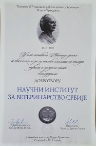 Предcедник Републике Србије Александар Вучић, Поводом Дана државности Србије – Сретења, у уторак, 15. Фебруара 2022.године, Сретењским орденом трећег степена одликовао је Научни институт за ветеринарство Србије, за нарочите заслуге за Републику Србију и њене грађане у области ветеринарских наука, а поводом 95 година постојања.