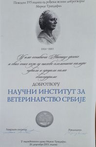 Предcедник Републике Србије Александар Вучић, Поводом Дана државности Србије – Сретења, у уторак, 15. Фебруара 2022.године, Сретењским орденом трећег степена одликовао је Научни институт за ветеринарство Србије, за нарочите заслуге за Републику Србију и њене грађане у области ветеринарских наука, а поводом 95 година постојања.