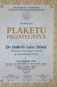 Научни институт за ветеринарство Србије у 2021. години обележио је 95 година постојања, a значајан допринос развоју науке и привреде награђен је Светосавском наградом дана 27.01.2022. Награду је у Влади Републике Србије у име института примила директорка др сци. вет. мед. Добрила Јакић Димић, научни саветник.